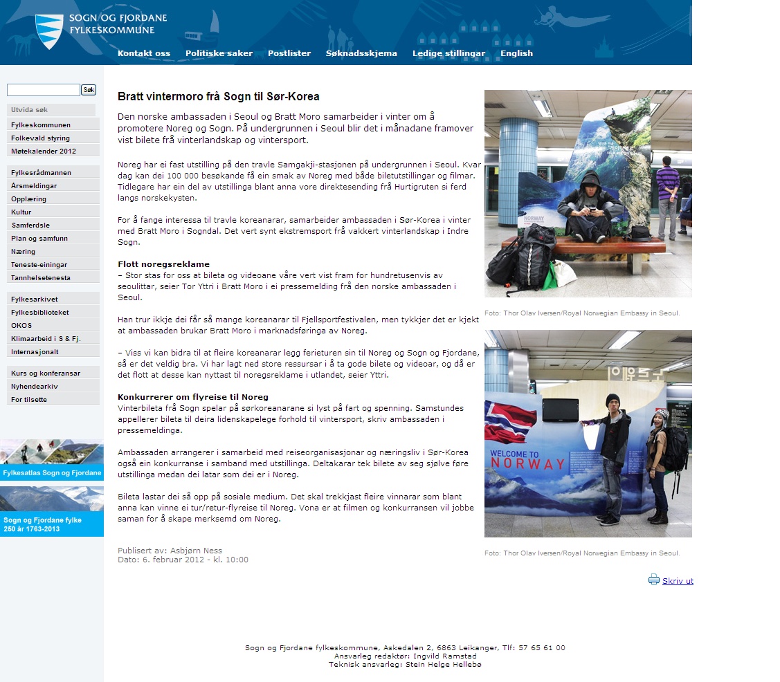 Norway project featured on Sogn og Fjordane fylkeskommune(Norwegian news paper)